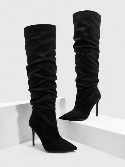 CUCCOO SZL Women's Fashion Pointed Toe Ruched Thigh High Boots, Stiletto Heel, Suitable For Dates And Parties For Christmas Spring Shoes