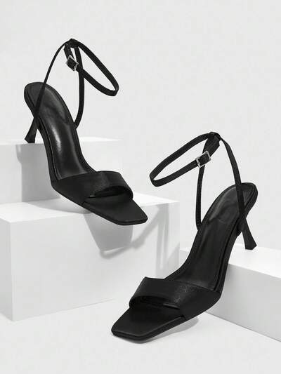 CUCCOO SZL Women's Square Toe Stiletto Heel Black Snake Skin Buckle Strap Sandals, Sexy & Elegant For Party And Occasion For Christmas Spring Shoes Prom Heels Summer Shoes