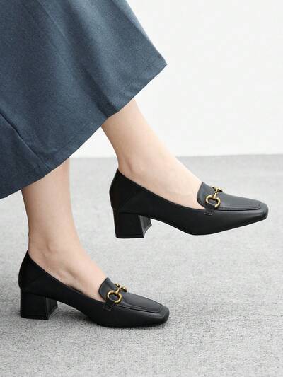 CUCCOO BIZCHIC Apricot Square Toe Chunky Heel Fashionable French Minimalist Versatile Women High Heel Shoes, Spring/Autumn Spring Shoes