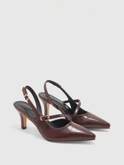 CUCCOO BIZCHIC Women's Pointed Toe Low Vamp Metal Multi-Strap Buckle Stiletto Heel Slingback Sandals, Elegant And Fashionable High Heels For Christmas Spring Shoes