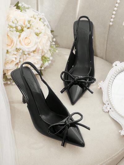 CUCCOO CHICEST Elegant Pointed Toe Bowknot High Heel Pumps, Classic Black PU/Patent Leather Hollow Out Design Lady's Formal Party, Dating, Valentine's Day, New Year Event, Office Wear Shoes Summer Shoes Summer Break Easter Prom Heels For Christmas Elegant Shoes Wedding Shoes Summer Shoes Bride Shoes