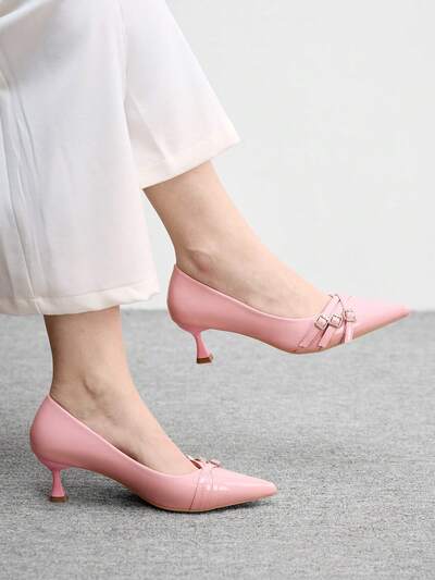 CUCCOO BIZCHIC Women Shoes Women's Pointed Kitten And Pink Multi-Strip Cross Low Vamp Daily Commute Versatile To Work Slip-On Women's High Heels Shoes Women's Shoes