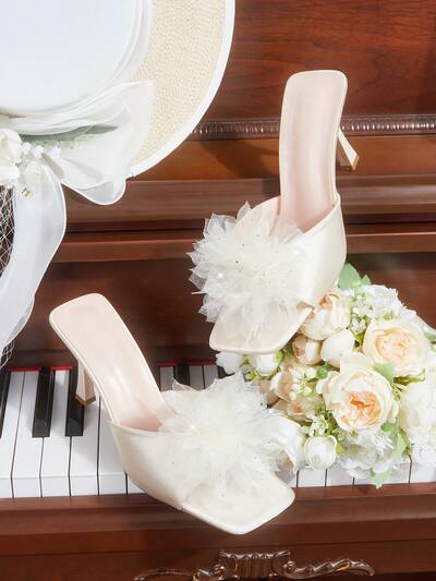 CUCCOO HITCHD Women's Square Toe Stiletto Heel Mule Shoes, Sexy Fashion Floral Mesh Slip-On Sandals, Suitable For Dresses, Party, Nightclub Wedding Shoes Spring Shoes Bride Shoes