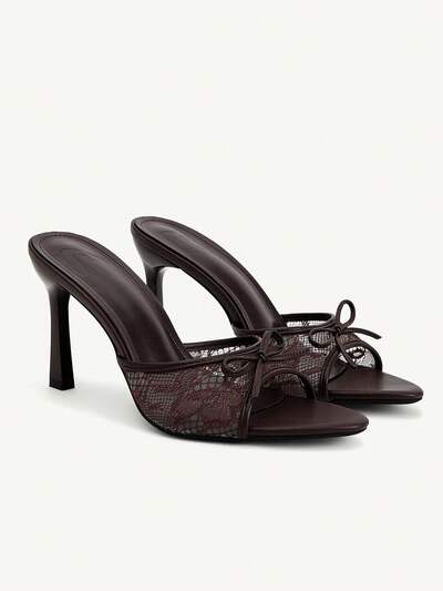 CUCCOO CHICEST Women Shoes Spring And Summer New Brown Lace Mesh Bow Peep Toe Women's High Heel Sandals Slippers Fashion Comfortable Versatile Elegant Sexy Party Women's Sandals Peep Toe Sandals Summer Shoes