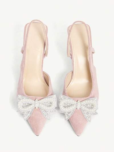 CUCCOO CHICEST Women Shoes Spring Summer New Three-Dimensional Cute Big Bow Design Pointed Toe Wine Glass Heel Middle Heel Romantic Elegance Simple Black Satin High Heel Single Slingback Dating Afternoon Tea Party Valentine's Day Elegant Wear Banquet Dating Evening Dress Sweet And Sexy Wedding Shoes Half Slippers Macaron White Beige Blue Royal Blue Pink Brown Green Burgundy Gray Rose Red Purple Yellow Orange Apricot Gold Silvery Rhinestones Big Size Rhinestone Flower Lace Elegant Shoes Wedding Shoes