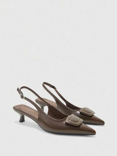 CUCCOO BIZCHIC Women's New Pointed Brown Glossy Oily Leather Slingback Thin Heel Closed Toe Commuting Fashionable Wear High-Heeled Sandals