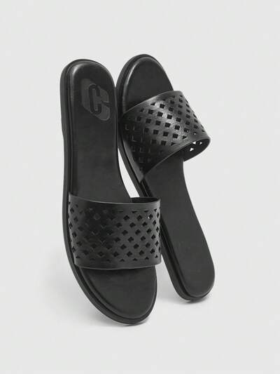 CUCCOO BIZCHIC Black Laser Rhombic Minimalist Fashion Versatile Women Flat Sandals