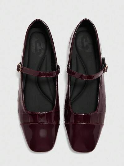 CUCCOO BIZCHIC Women Shoes Spring And Autumn Metal Buckle Contrasting Color Hemming Flat Bottom, Retro Suede Mary Jane Shoes Commuting Shopping
