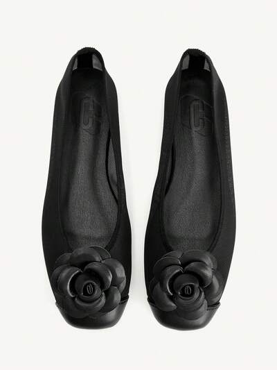 CUCCOO CHICEST Black Mesh Flower Comfort Women's Flat Shoes