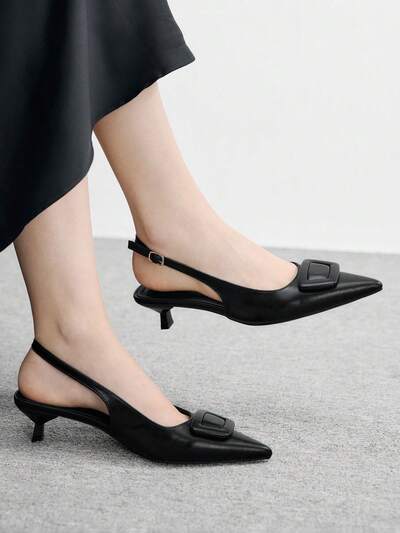 CUCCOO BIZCHIC Women's Pointed Toe Slim Kitten Heel Black Simple Commuting Fashion Office Pumps For Christmas Spring Shoes