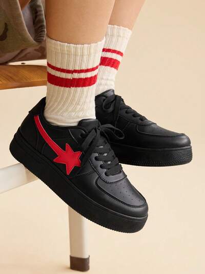 CUCCOO EASI Women's Fashionable Lace-Up Thick Sole Casual Shoes, Waterproof Platform Sneakers, Versatile For Spring & Autumn