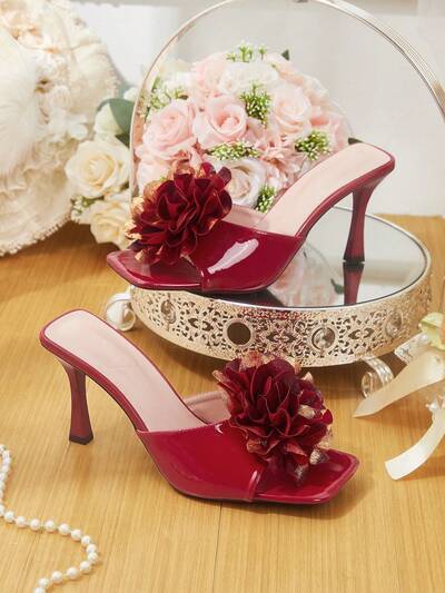CUCCOO HITCHD Women's Square Toe Stiletto High Heel Slip-On Floral Embellished Mule Sandals, Sexy Fashion Dress Shoes For Party, Nightclub Wedding Shoes Spring Shoes Bride Shoes
