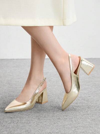 CUCCOO BIZCHIC Women's Fashion Gold Open Heel Pointed Toe Chunky Heel Pumps, Classic Minimalist For Commute, Date, Party, Holiday, Wedding For Christmas Spring Shoes