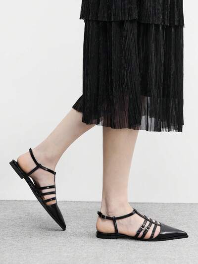 CUCCOO BIZCHIC Women's Pointed Toe Flat PU Leather Slip-On Backless Sandals, Fashionable, Comfortable For Daily, Party, Commuting Spring Shoes