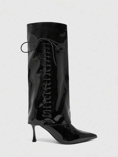 CUCCOO SZL Women's Pleated PU Leather Over-The-Knee Boots, Fashionable & Versatile For Daily Wear For Christmas