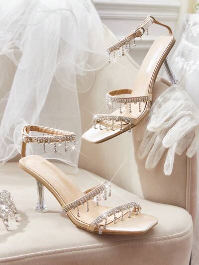 CUCCOO HITCHD Women's Fashionable Elegant Crystal Decorated High Heel Sandals For Christmas Elegant Shoes Wedding Shoes Summer Shoes Bride Shoes