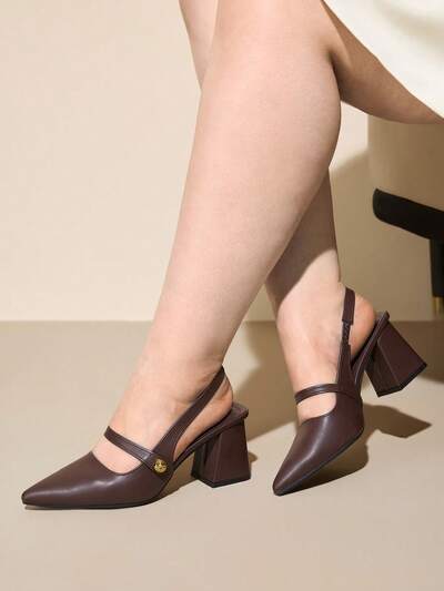 CUCCOO CURVES Women Shoes Wide Fit Pointed Thick High Heel Brown Belt Stylish And Comfortable Daily Commuter Versatile Fattened Women's High Heel Shoes Plus Size