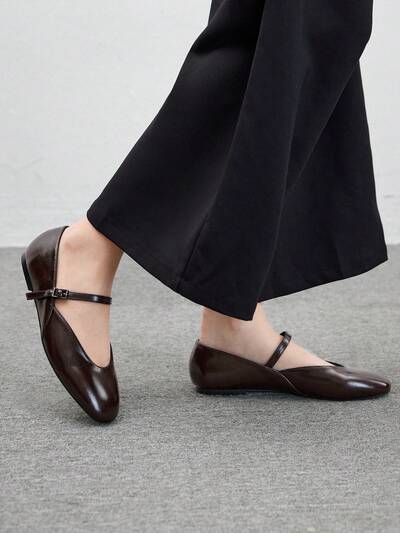 CUCCOO DOLLMOD Women Fashion Leather Burgundy Mary Jane Buckle Decor Square Toe Red Flats, Valentine's Shoes For Summer Vacation Shoes Summer Back To School Shoes College Student Shoes BURGUNDY Mary Jane Spring Shoes Spring Break Easter For Christmas Spring Shoes