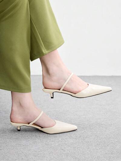 CUCCOO BIZCHIC Women Shoes Spring And Summer New Pointed Thin Heel Medium Heel Black Comfortable Versatile Temperament Elegant Suede Low Vamp Slingback Commuter Dating Daily Wear Solid Color Women's High Heel Shoes