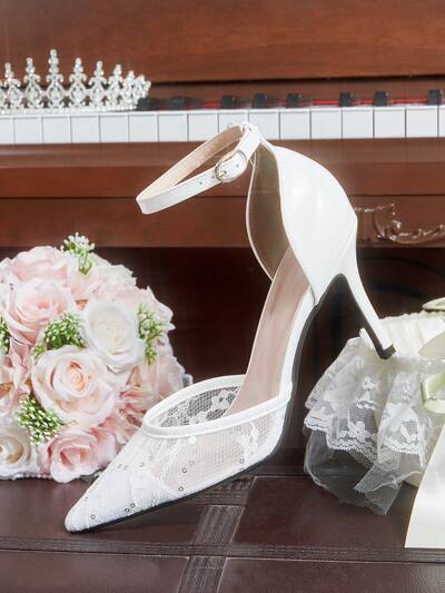 CUCCOO HITCHD Women Pointed Toe Lace Embroidered High Heel Shoes, Elegant Romantic White Ladies Pumps, Bridal Wedding Occasion Heels Wedding Shoes Summer Shoes Bride Shoes