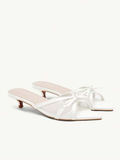 CUCCOO CHICEST Women's Pointed Toe Bow Decor Elegant High Heel Slide Sandals Wedding Shoes Summer Shoes Bride Shoes