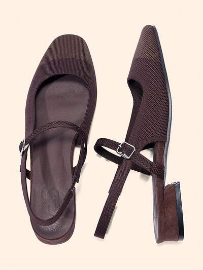 CUCCOO BASICS Women's Coffee Color Mary Jane Strap Low Heel Comfortable Square Toe Flats For Christmas Spring Shoes