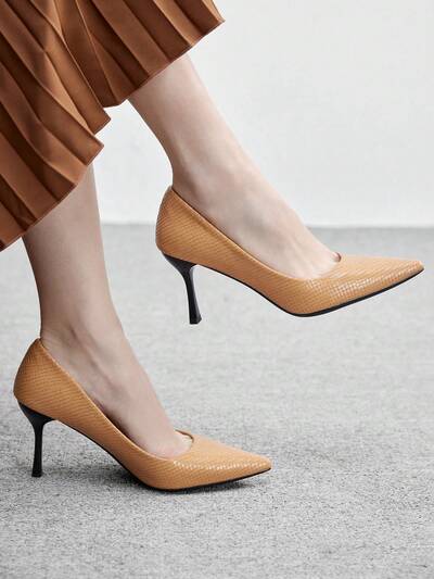 CUCCOO BIZCHIC Women's Pointed Toe Pumps - Solid Deep Brown Color, Retro French Style With Slim Heel Spring Shoes Spring Break Easter Prom Heels