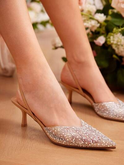 CUCCOO HITCHD Rhinestone Decor Solid Color Pointed Toe Fashionable Elegant Commuting High Heels Wedding Shoes