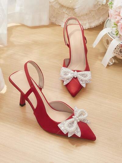 CUCCOO HITCHD Women Shoes Spring Summer New Three-Dimensional Cute Big Bow Design Pointed Toe Wine Glass Heel Middle Heel Romantic Elegance Elegant Simple Black Satin High Heel Single Slingback Dating Afternoon Tea Party Valentine's Day Elegant Wear Banquet Dating Evening Dress Sweet And Sexy Slingback Wedding Shoes Half Slippers Macaron White Beige Blue Royal Blue Pink Brown Green Burgundy Gray Rose Red Purple Yellow Orange Apricot Gold Silvery Rhinestones Big Size Rhinestone Flower Lace Wedding Shoes Spring Shoes Bride Shoes