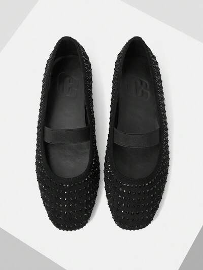 CUCCOO CHICEST Women's Black Sparkly Rhinestone Mary Jane Flats - Office Commute Daily Shoes For Christmas Elegant Shoes Wedding Shoes Summer Shoes Bride Shoes