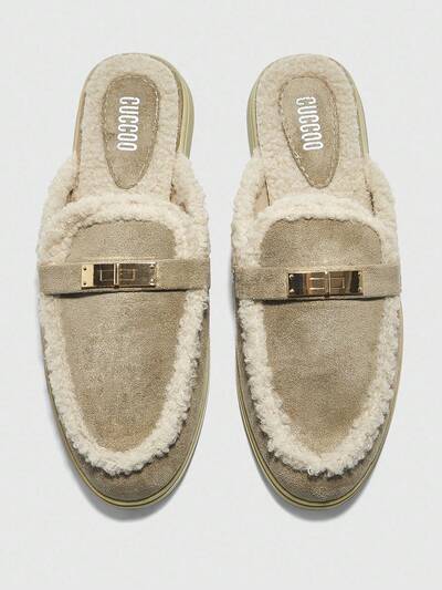 CUCCOO BIZCHIC Women's Comfortable Faux Suede Fluffy Slip-On Flat Mules, Versatile For Commuting, Outdoor, Work, Daily Wear For Christmas Spring Shoes