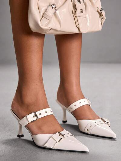 CUCCOO SZL Women's Pointed Toe Stiletto Heel Backless Pumps With Metal Buckle Decor Valentine's Day