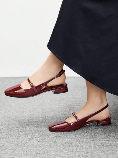 CUCCOO BIZCHIC Women's Shiny Patent Leather Mary Jane Flats, Round Toe, Wine Red, Fashion For Commuting, Dating, Party, Holiday, School For Christmas Spring Shoes