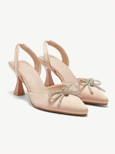 CUCCOO CHICEST Women Shoes Fashion Champagne Color Back Strap Rhinestone Bow High Heel Shoes Commuting Date Party Wedding Vacation Spring Shoes Spring Break Easter Prom Heels