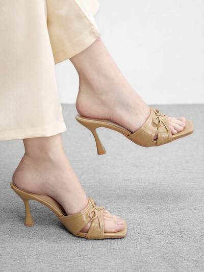 CUCCOO HITCHD Pointed Toe Thin Heel Apricot Lace & Mesh Elegant Wedding Party Women High Heel Backless Pumps For Christmas Elegant Shoes Wedding Shoes Summer Shoes Bride Shoes