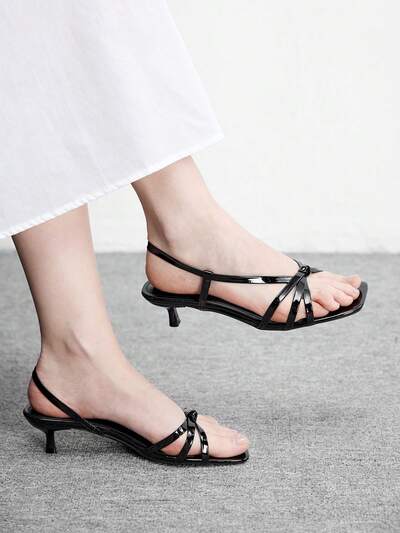 CUCCOO BIZCHIC Women Shoes Spring And Summer New Black Thin Strip With Open Toe Women's Middle Heel Sandals Simple Fashion Comfortable Daily Versatile Commuter Women's Sandals Women's Shoes Summer Shoes