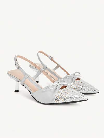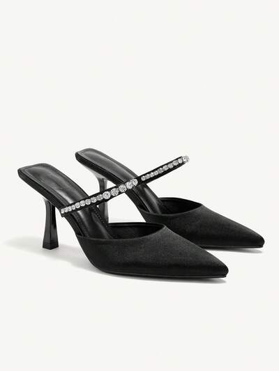 CUCCOO SZL Women's Pointed Toe Rhinestone Decor Fashion High Heel Shoes, Suitable For Daily Wear