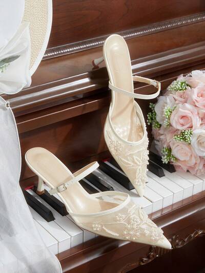 CUCCOO HITCHD Women's Fashionable Elegant Party Sequin & Beaded Decor Pointed Toe High Heels Valentine's Day Elegant Shoes Wedding Shoes Summer Shoes Bride Shoes