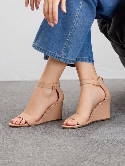 CUCCOO BIZCHIC Apricot Color Ankle Strap Classic Wedge Sandals For Women, Suitable For Commute, Date, Party, Wedding, Holiday Spring Shoes Spring Break Easter For Christmas