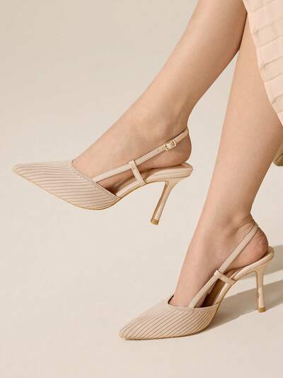 CUCCOO BASICS Women's Pointed Toe Woven Buckle Design Apricot Color Stilettos, Fashionable & Versatile Daily Wear Spring Shoes