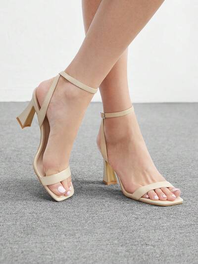 CUCCOO SZL Women Shoes Spring And Summer New Apricot Square Toe Thin High Heel Rhinestone Buckle Thin Strip Women's High Heel Sandals Slippers Fashionable And Comfortable Versatile Commuter Sexy Party Women's Sandals Women's Shoes Prom Heels Summer Shoes