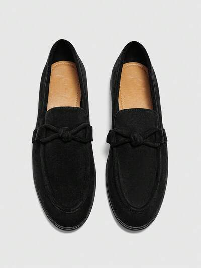 CUCCOO BIZCHIC Women's Fashion Black Suede Bow Design Comfortable Casual Loafers, Suitable For Commuting, Outdoor, Travel, Shopping, Work, And Daily Wear Spring Shoes