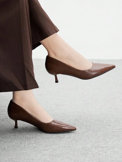 CUCCOO BASICS Coffee-Color Knitted Material Pointed Toe Kitten Heel Women's Slip-On Flats, Fashionable, Comfortable, Breathable, Versatile For Daily Wear And Work Spring Shoes