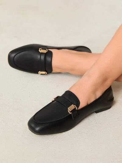 CUCCOO BASICS Woman Shoes Point Toe Metal Decor Versatile Black Flat Loafers For Summer Vacation Shoes Summer Back To School Shoes College Student Shoes Spring Shoes Spring Break Easter For Christmas Spring Shoes