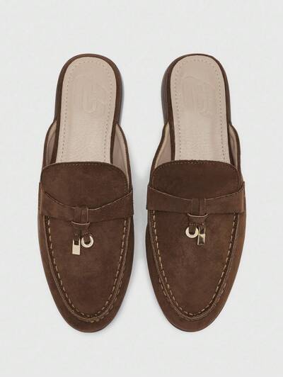 CUCCOO BIZCHIC Women's Fashion Coffee Suede Comfortable Commute Flat Mule Slip-On Loafers, Versatile For Outdoor, Work, Casual Daily Wear For Christmas Spring Shoes
