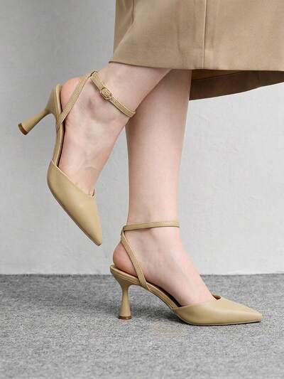 CUCCOO BIZCHIC Women Shoes Pointed Thin High Heel Apricot Back Ankle Strap Slingback Simple Classic Women's High Heel Shoes Daily Versatile Commuter Temperament Fashion Party Women's Slingback Shoes