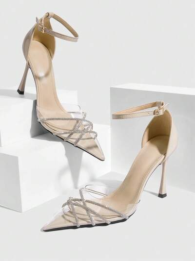 CUCCOO SZL Women's Pointed Toe Rhinestone Embellished Elegant High Heel Sandals Valentine's Day
