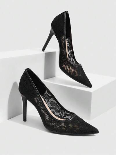 CUCCOO SZL Women's Fashion Black Lace Material Sexy Pointed Toe Stiletto High Heel Pumps, Suitable For Commuting, Dating, Party, Holiday, Wedding And Other Occasions For Christmas Spring Shoes