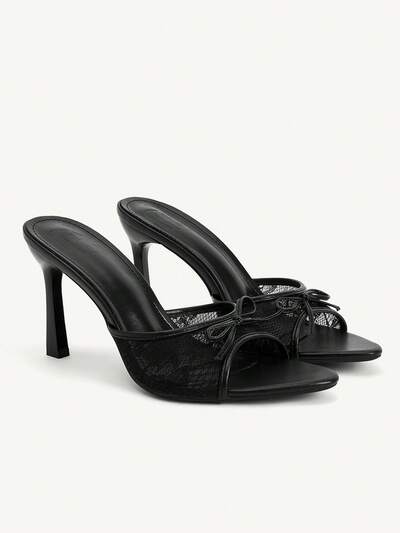 CUCCOO CHICEST Women Shoes Spring And Summer New Black Lace Mesh Bow Peep Toe Women's High Heel Sandals Slippers Fashion Comfortable Versatile Elegant Sexy Party Women's Sandals Peep Toe Sandals Summer Shoes