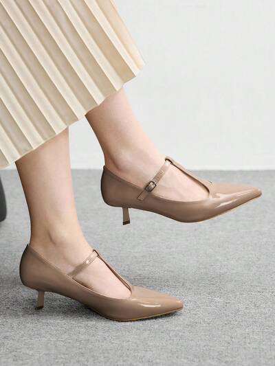 CUCCOO BIZCHIC Pointed Toe Stiletto Heel Beige Backstrap Women's Pumps, Slingback Dress Shoes For Daily Commute, Work, Party